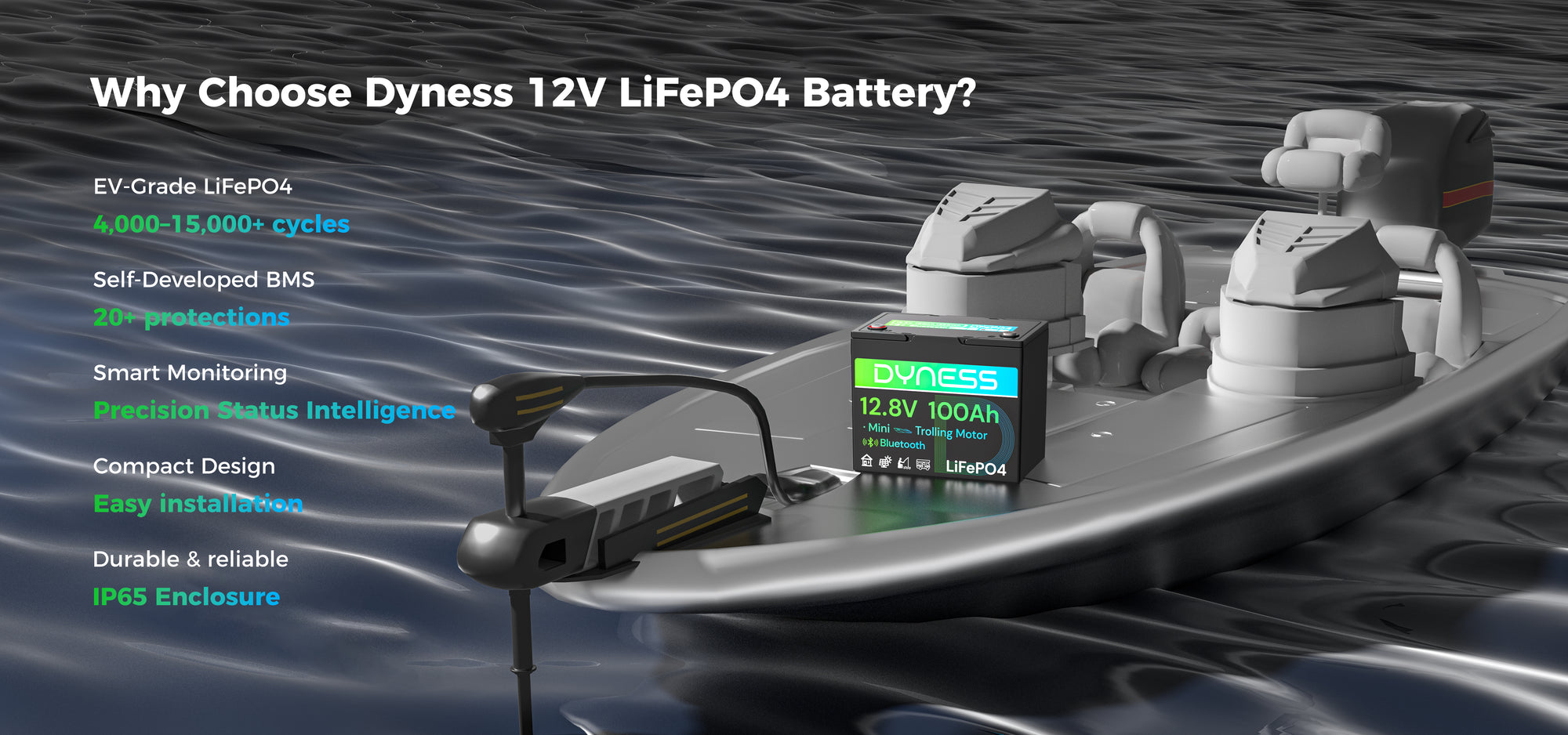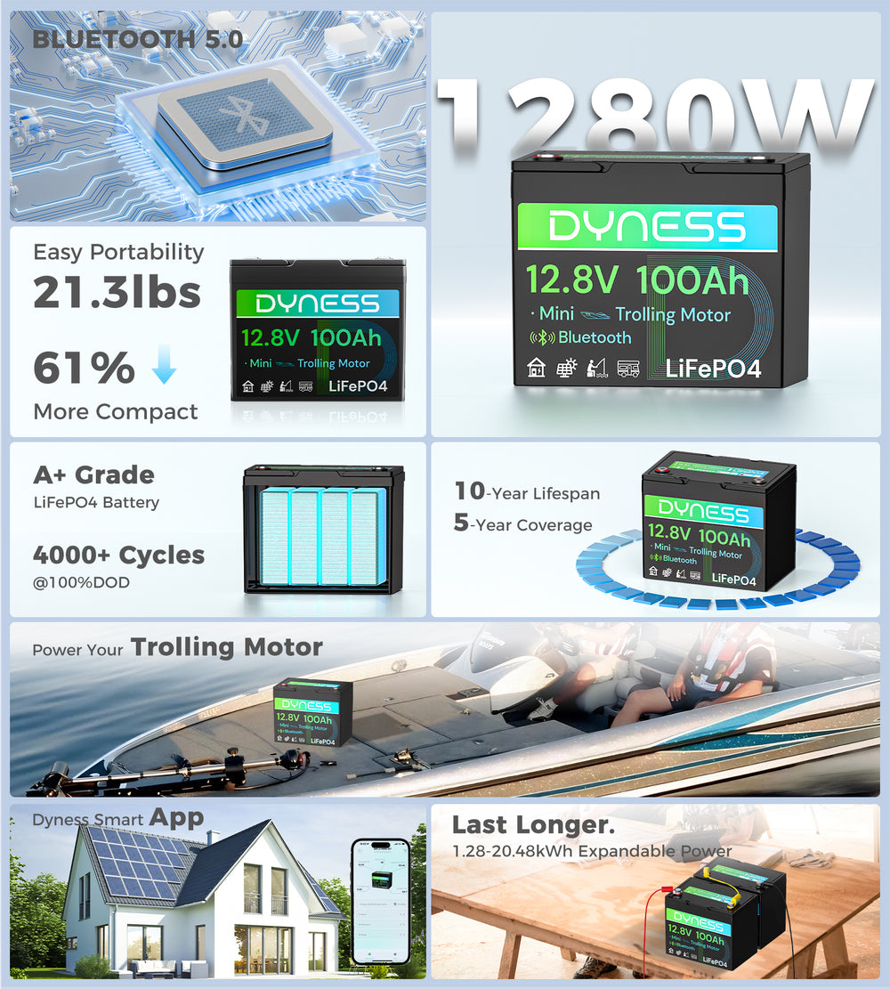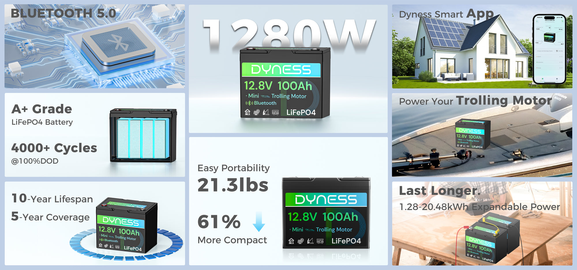 Dyness 12V 100Ah Group 24 Bluetooth-Enabled LiFePO4 Deep Cycle Battery
