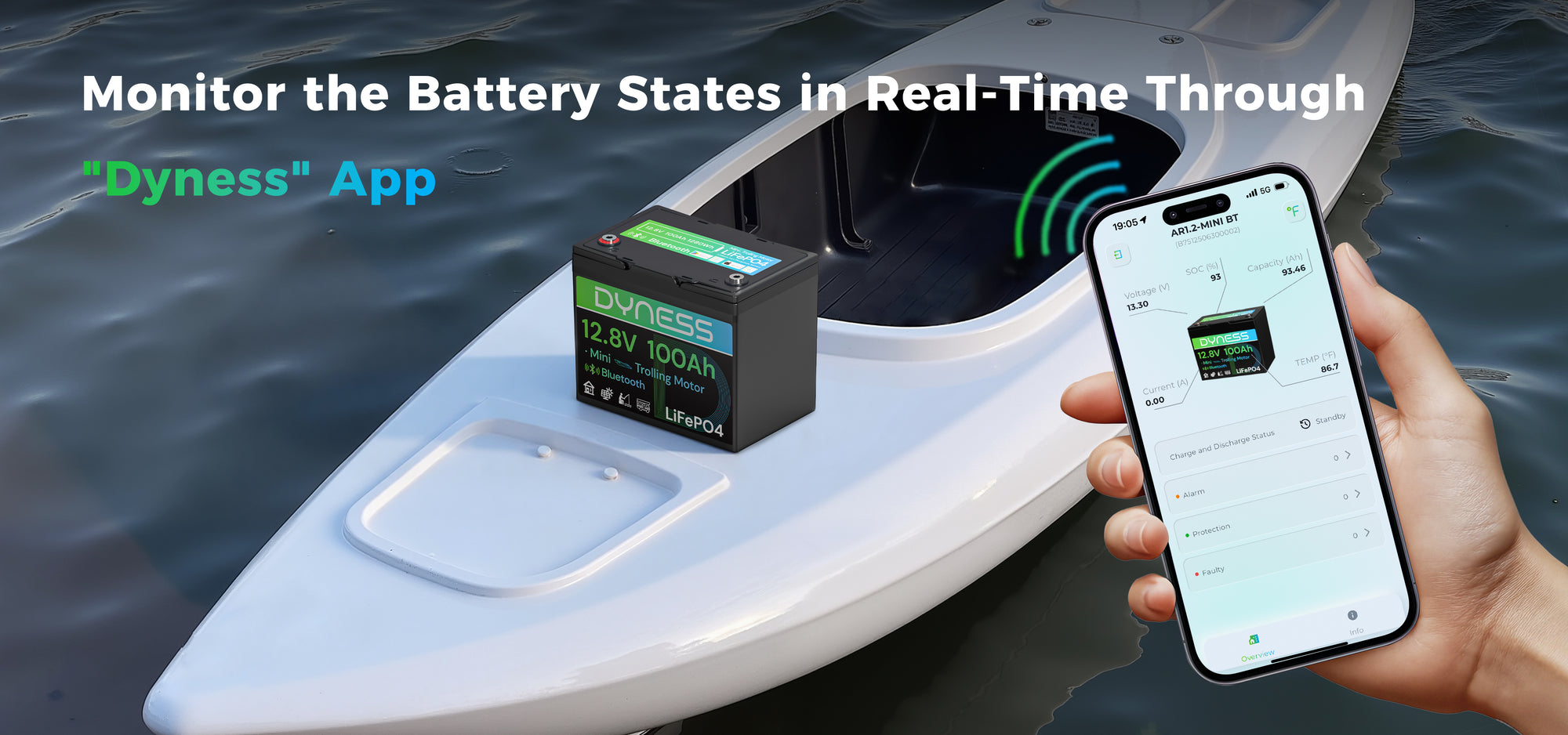 The group 24 battery smart battery built-in Bluetooth feature lets you monitor your battery's real-time status—including state of charge (SOC), voltage, current, cycle life, and temperature—directly from your smartphone. Just download the Dyness Battery App, enable Bluetooth on your phone, and select your battery from the list of available devices. No extra hardware is needed.