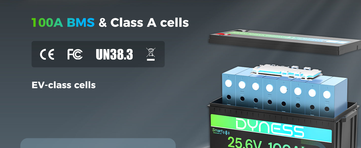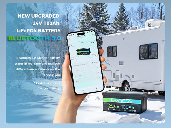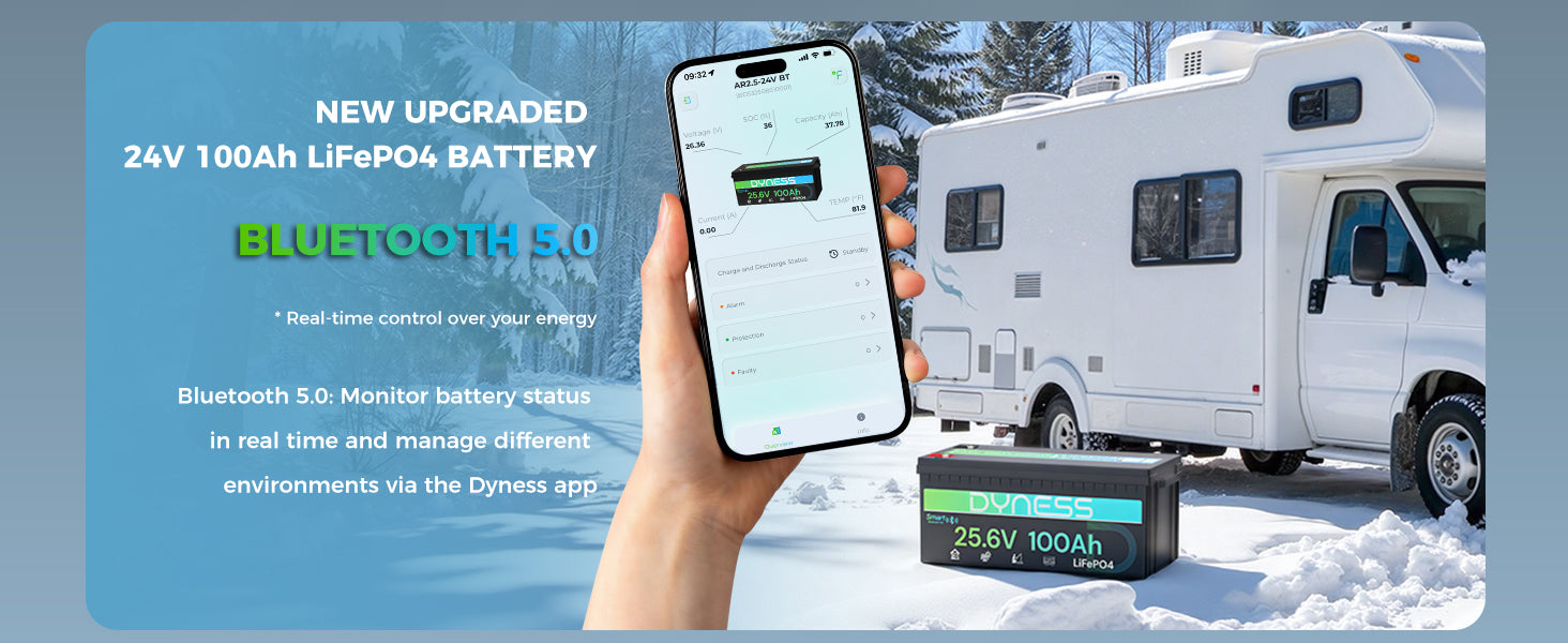 Dynesspower 24V 100Ah LiFePO4 Battery with Bluetooth
