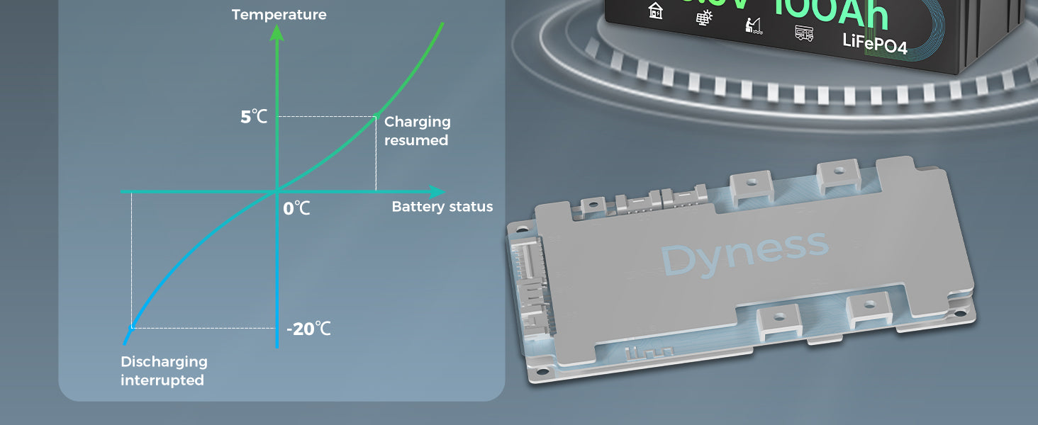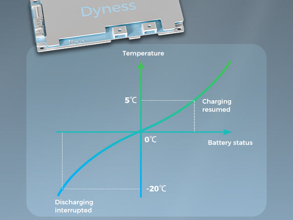 Advanced low-temperature charging cut-off protects the battery below 32°F (0°C) and restores charging at 41°F (5°C). Discharge protection activates at –4°F (–20°C) to ensure safe operation in harsh winter conditions.