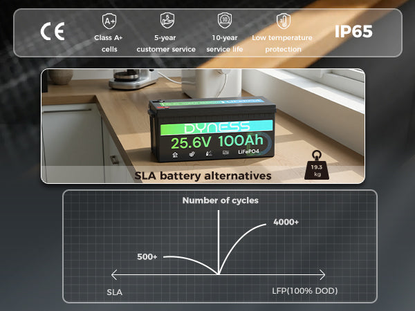 Delivers over 4000 cycles at 100% DOD and up to 10 years of lifespan—reducing replacement costs for long-term off-grid users.