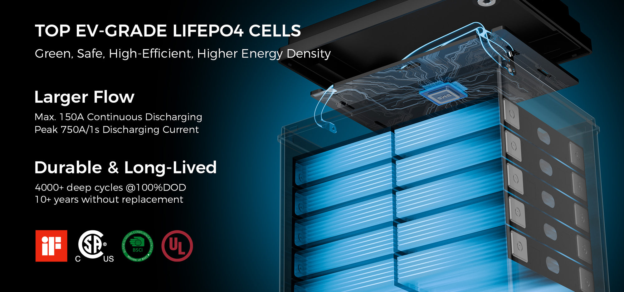 Over 4,000 cycles at 100% depth of discharge ensure a lifespan of 10+ years. Designed for safety, stability, and sustainability.