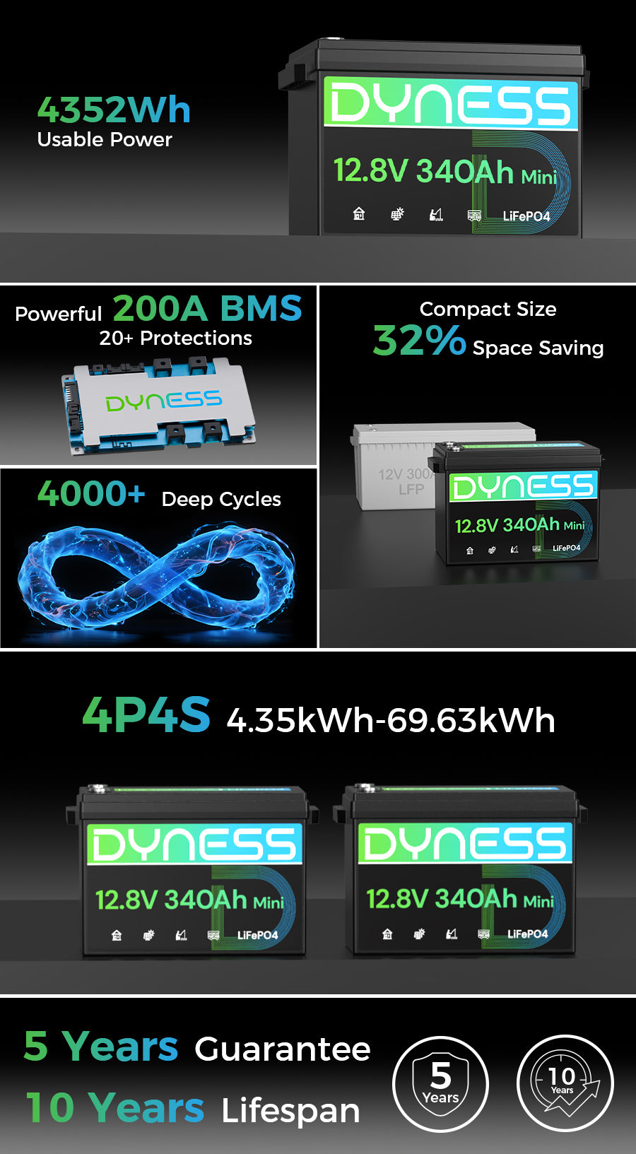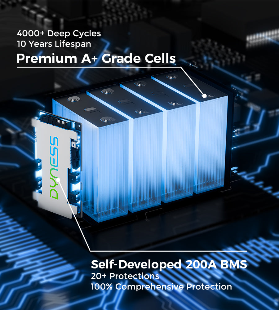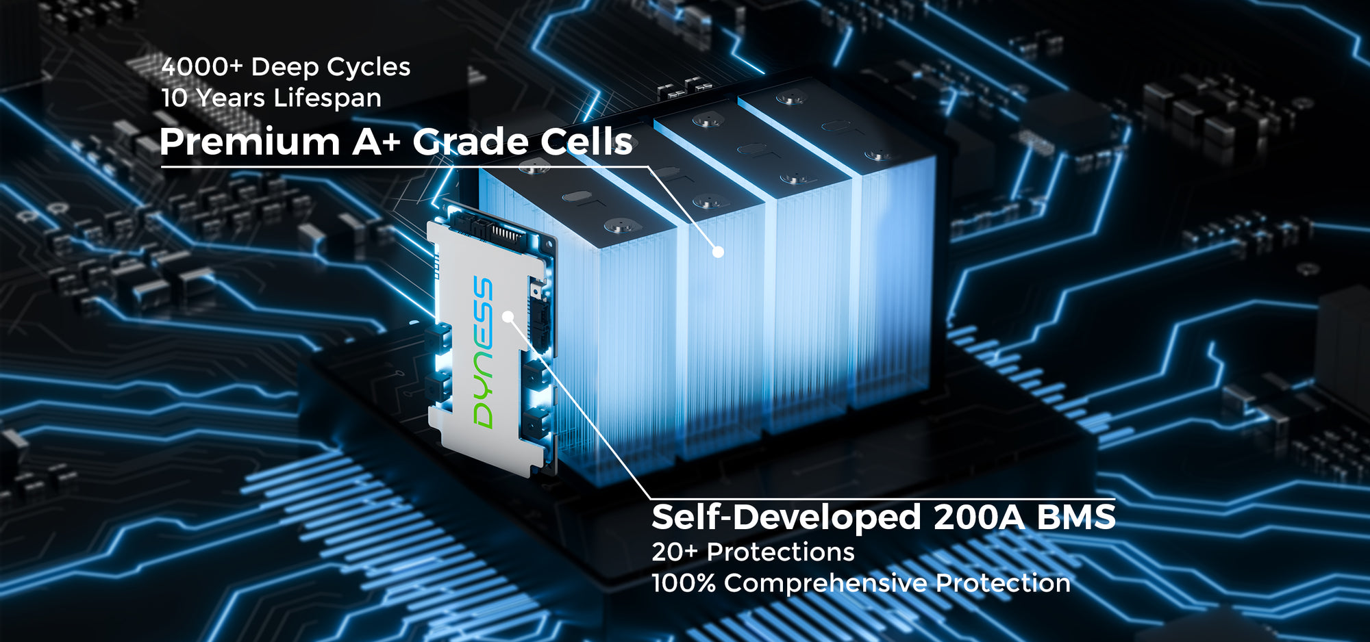 Smart Bluetooth 5.0: Track state of charge (SOC), charge level, and voltage in real time, and instantly monitor or manage the battery system via the Dyness app.