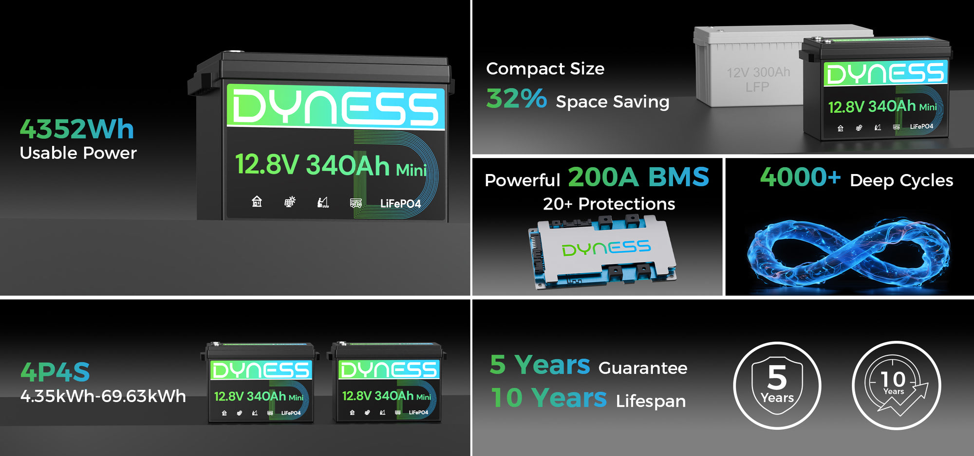 Maximum power, minimum size: 32% smaller than a typical 12V 300Ah lithium iron phosphate battery and 54% lighter than three 100Ah lead-acid batteries—combining exceptional power density with easy portability.