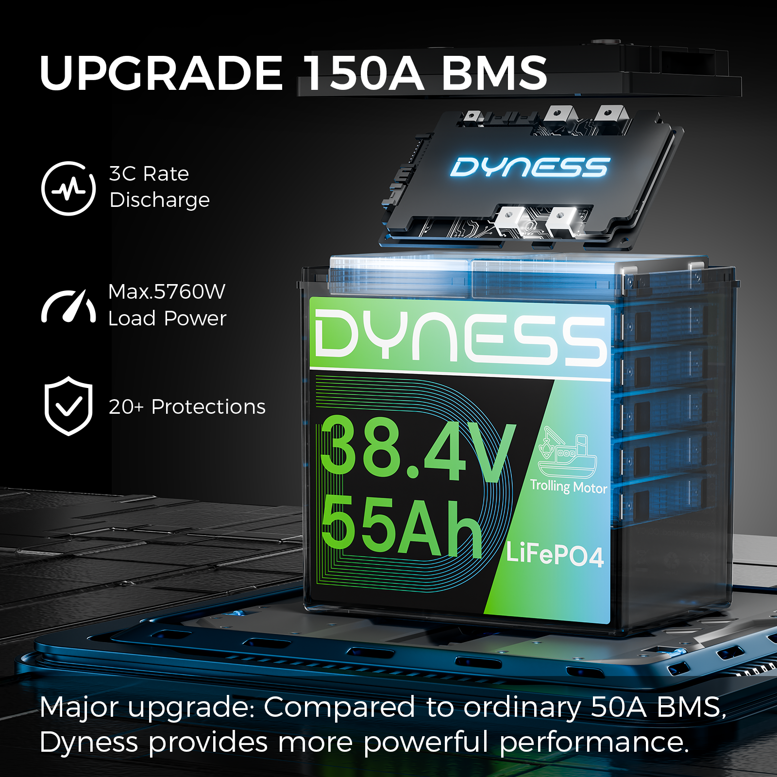 Up to 3C continuous discharge,low internal resistance,150A Continuous Discharge Current,450A Surge Discharge Current (5S),750A Max.Discharge Current (1s),Ensures stable operation of trolling motor.。。