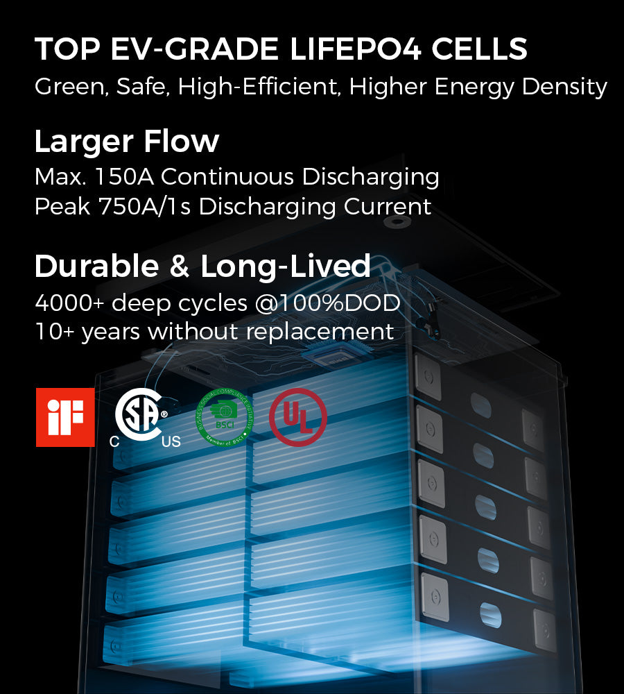 Over 4,000 cycles at 100% depth of discharge ensure a lifespan of 10+ years. Designed for safety, stability, and sustainability.